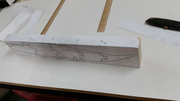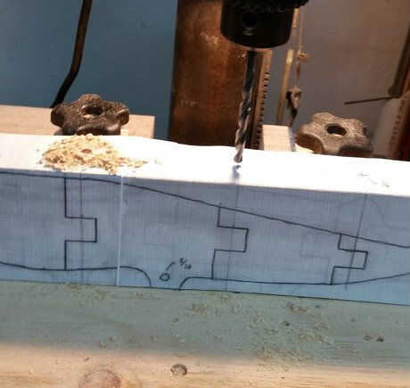 1) perforar antes de cortar el perfil, es más fácil mantener constante. Use 1/4" taladro a través de la parte superior de 2 x 4 y 5/16" para los orificios de la rueda.
