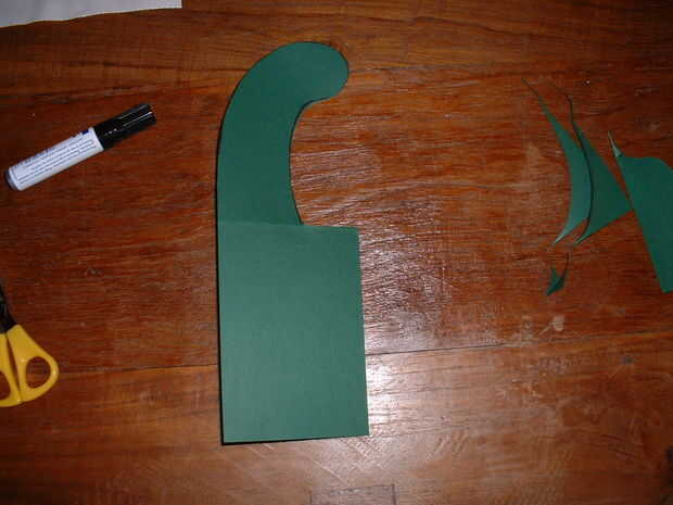 Doblar la cartulina verde otra vez y cortar los pies.