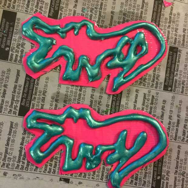 Recortar las formas. Elegí para cortar un poco fuera de la más externa de las formas de pegamento caliente por lo que mostró un poco rosado en los bordes!