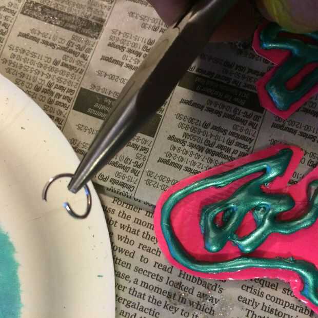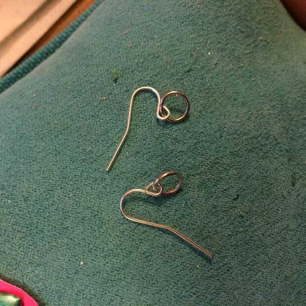 Poner un anillo pequeño salto abierto a través de cada bucle del gancho de pendiente. Cerca del salto los anillos.