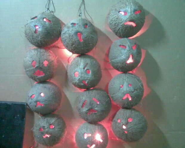 HE HECHO ESTO DE CÁSCARA DE COCO QUE ME PARECIÓ COCINA CERCA DE LA BASURA. ASÍ QUE PENSÉ DE HACER ES UTILIZAR COMO HALLOWEEN PROPS.
