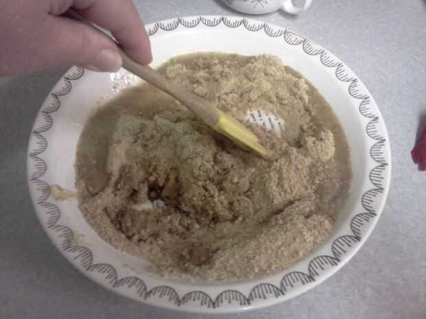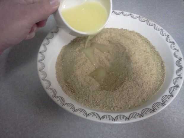 Una vez triturado finamente, coloque en un tazón y agregar 6 cucharadas de mantequilla derretida. Mezclar bien.