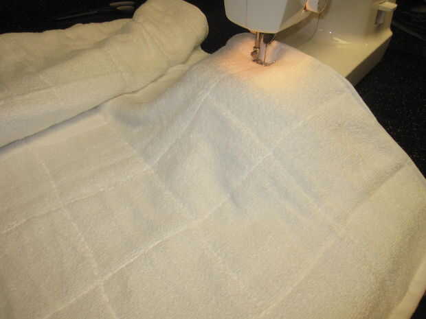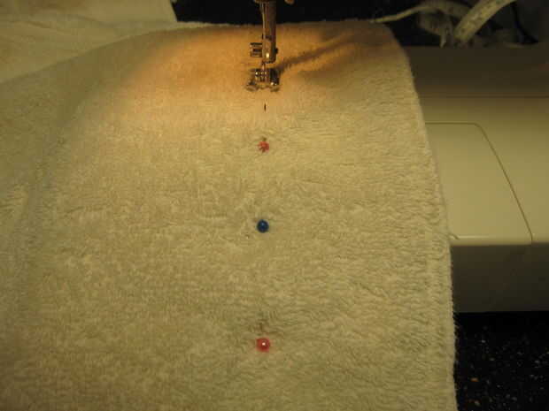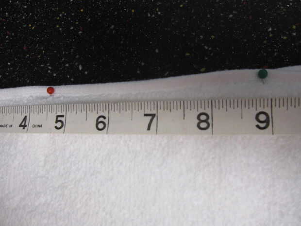 Para ambos tamaños, medir uniformemente a través de cada toalla de capas doble y marque con alfileres para edredón.