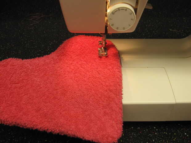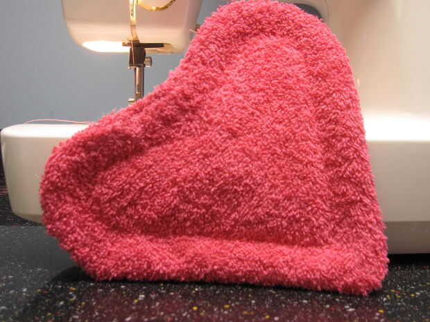 Prender las formas de dos corazón juntos y coser casi completamente, dejando una pequeña abertura. (Yo usé una costura de 1/4 de pulgada).