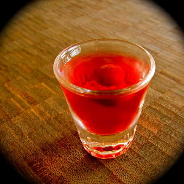 Cuidado - este cóctel de coágulo de sangre es fuerte. Beber responsablemente, gente. Usted podría terminar en el sofá con hipo y la sala girando a tu alrededor después de varias pruebas de"gusto".