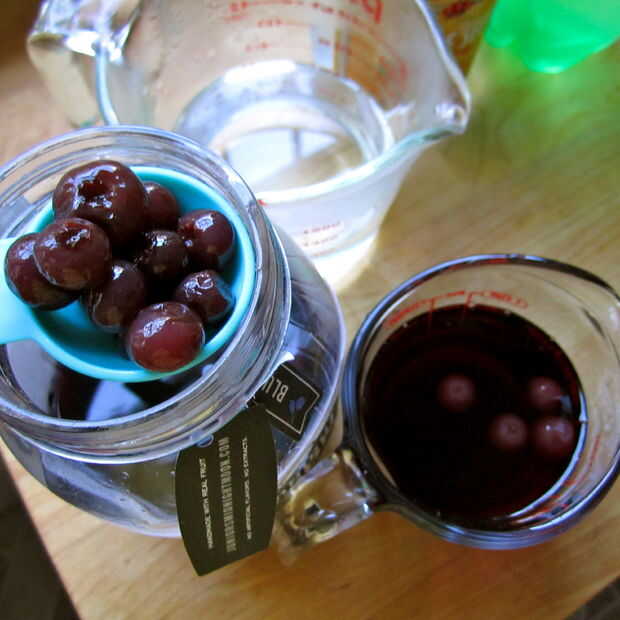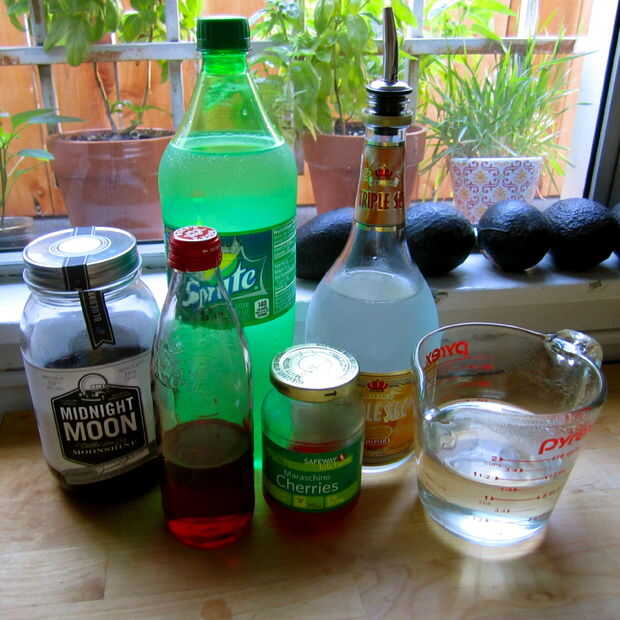 Si estás usando moonshine, encuentro es más fácil verter desde el tarro de masón en una taza de medir, que derramando moonshine por todo el lugar y mirando un poco borracho antes de que de otra manera. También es bueno utilizar una cuchara para sacar algunos de los arándanos extras!