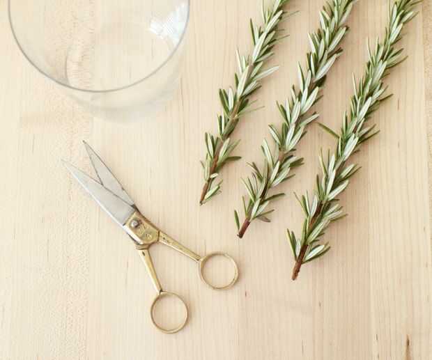 Elija tres ramitas de Romero con tallos fuertes. Más fuerte el tallo, más los árboles estará alto una vez que el cóctel se agrega al vidrio.