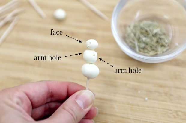 Elija dos hojas de romero seco grueso y ésos en los agujeros del brazo del palillo.