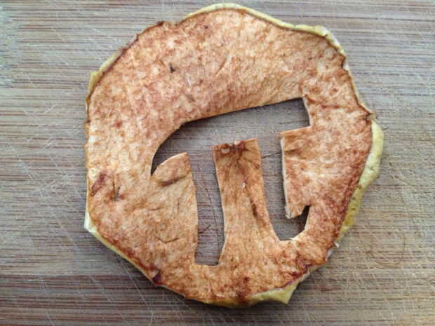 Los mejores resultados vendrán utilizando un cuchillo x acto, cúter u otra hoja similar para cortar la forma de Pi fuera de la manzana.