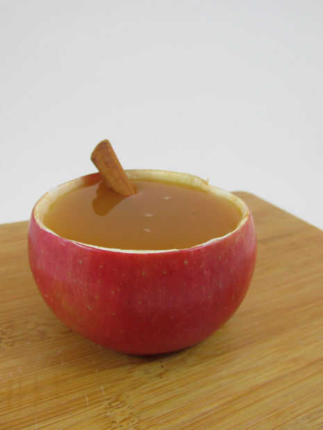Con sus tazas de manzana todo sellado para arriba y gran el lo único que queda es llenarlos y servir a tus invitados suerte.  Cuando cócteles pastel de manzana en copas de manzana me gusta decorar las copas con la mitad un palo de canela para acabar con.