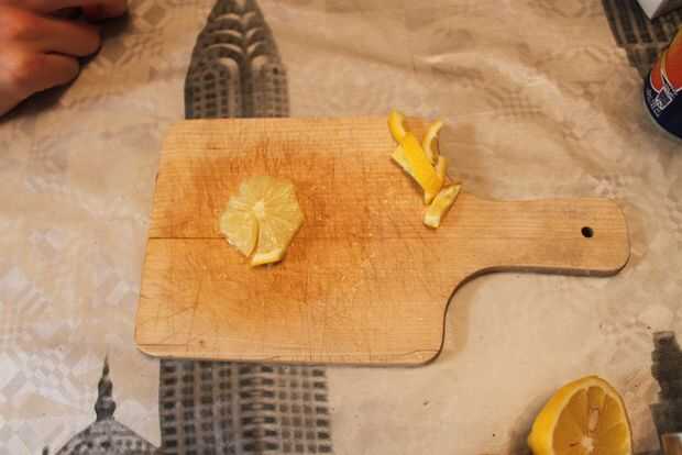 Maak nu een vormpje uit fruta naar keuze. Wij hadden de voorkeur voor een citroenschijfje. LAAT je creativiteit spreken en voeg er eventueel ook nog wat cocktailaccessoires aan pies zoals: een parasolletje, tropisch rietje...