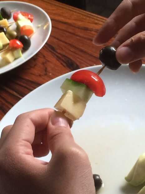 Luego deslice los ingredientes en el pincho de palillo de dientes.