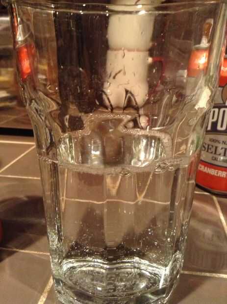 Pour la seltzer en su taza hasta que llene a mitad de camino.