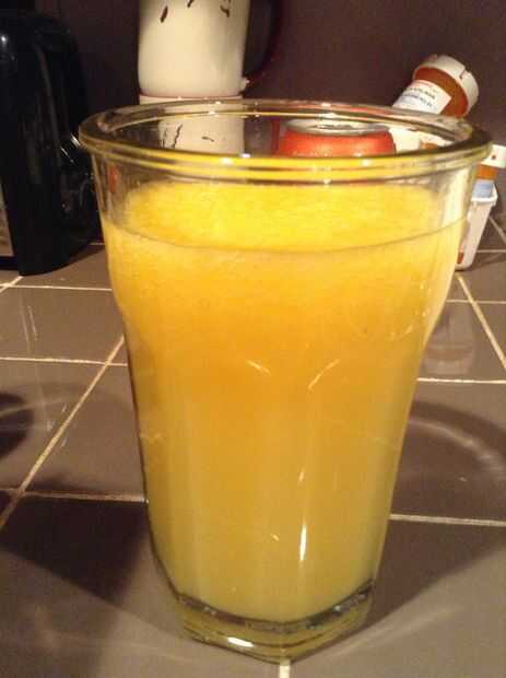 Vierte su jugo de naranja hasta que alcanza sobre la parte superior del vidrio.