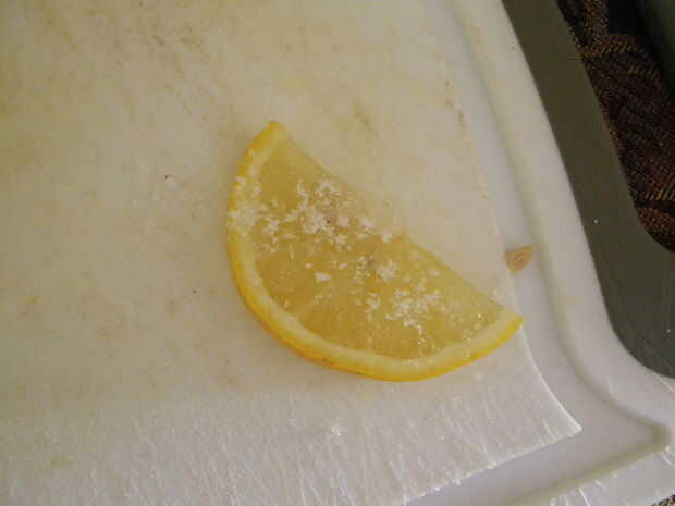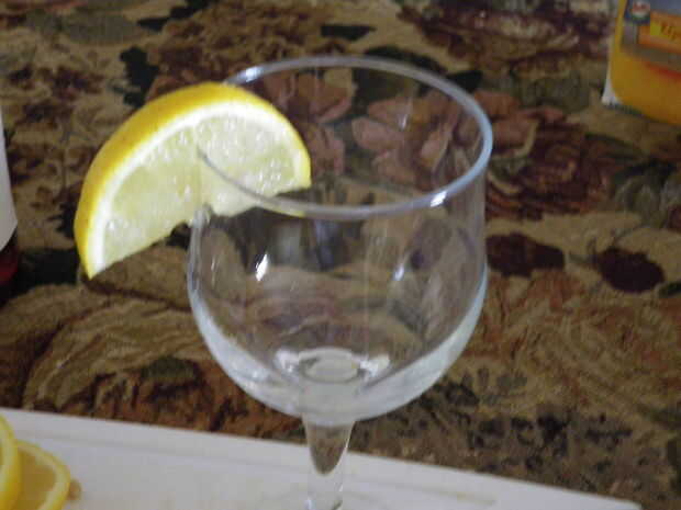 Primero debe cortar el limón en partes. Tome una mitad y cortar una rebanada. Poner un poco de azúcar a un lado. Luego de ponerlo en el cristal.