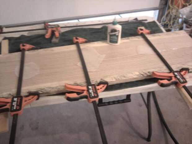 Para el pegamento hasta sólo necesidad de dos tableros encolados juntos y afianzado con abrazadera para arriba. Este es el mismo paso para la parte superior y las piezas de dos piernas.