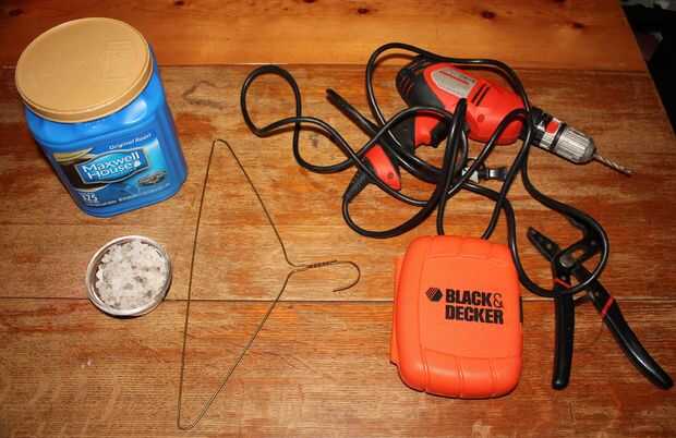 usando la parte superior del contenedor como una curva de forma el cable alrededor de la tapa. Una vez que estés satisfecho con la forma de decidir donde quieres el cable para ir en el envase para asegurar la tapa agitando y marcar la tapa para la perforación de los agujeros.