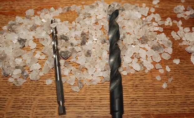 Terminé haciendo agujeros de 1/2 pulgada en mi tapa puesto que algunos de mi sal de la roca es abajo derecha grueso. Incluso, conecté dos agujeros de taladro para hacer un agujero muy grande en el centro.