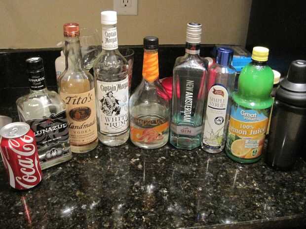 Para este cóctel necesitas suministros varios. Este cóctel utiliza los blancos: tequila, vodka, Ron blanco, triple sec y una Ginebra. También necesita un almíbar de jugo de limón en un color de su elección. Por último, necesita un agitador para mezclar y algunos hielo tanto hacerlo y servirlo.