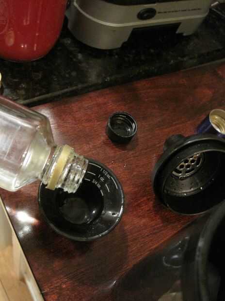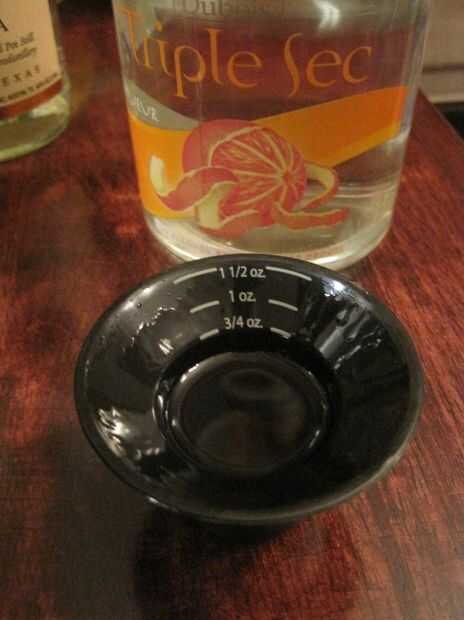 Comience por llenar la coctelera la mitad con hielo. continuación, vierta una onza de una onza de vodka de limón y una onza de triple sec en su coctelera. Agite bien hasta que se mezcle.
