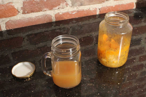 me encanta encontrar formas innovadoras para servir cócteles y uno de los métodos clásicos de todos los tiempos está usando ahuecados hacia fuera frutas o cáscaras de fruta. Para este cóctel, quería darle toda la experiencia completa de cítrica. Idea