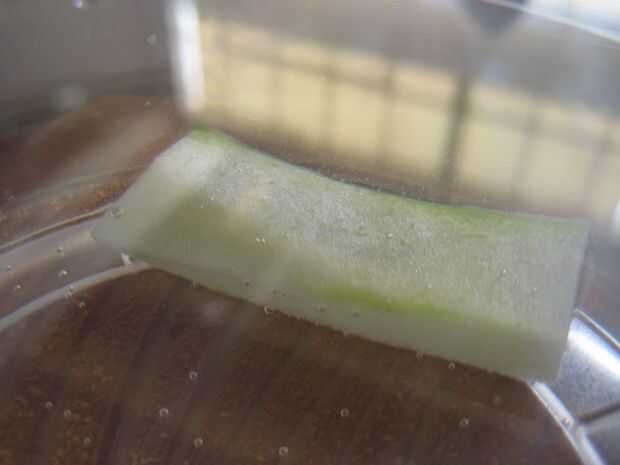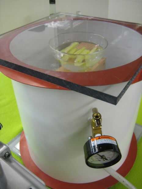 Como las formas vacío, fácilmente verá las burbujas escapan de la fruta. El vacío saca el aire de los trozos de fruta y permite así alcohol tomar ese espacio y infundir la fruta con el coctel.