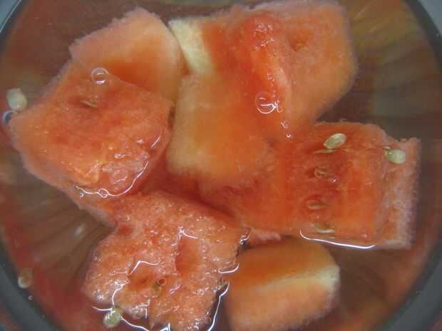 * Nota: algunos de los frutos en las fotos de abajo no es completamente bajo el nivel superior del alcohol. Se obtienen mejores resultados cuando se utilizó otro recipiente o pieza de vidrio presionado la fruta y mantenerla debajo de la superficie de la bañera cóctel.