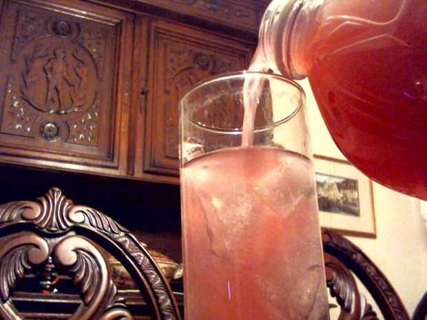 Vierta el ron, limonada rosa y licor de melocotón en una copa balón alta con hielo y revolver. Decorar con un molinete. Disfruta mejor a través de una pajita.