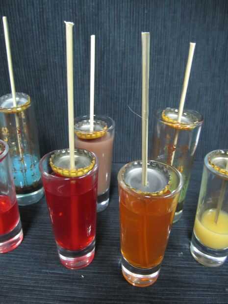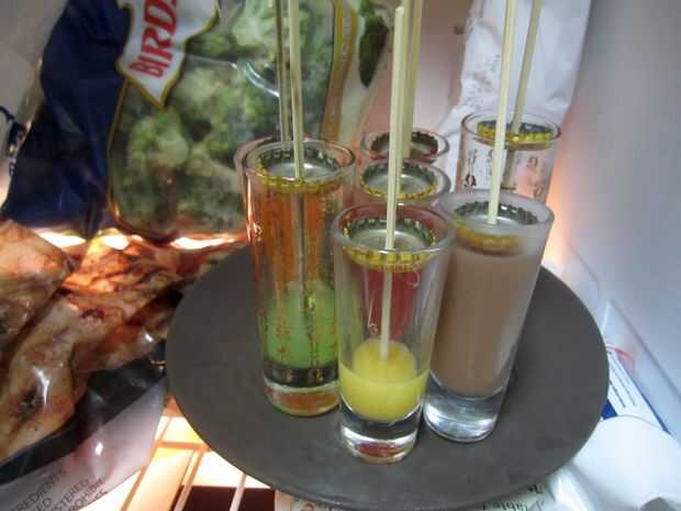 Poner un tapón en cada pincho y colocarlos en vasos de chupito.