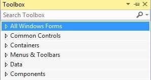 Haga clic en el Form1.cs[Design] ficha para abrir el diseñador de formularios. En la mano izquierda lado hay un bar llamado "caja de herramientas", haga clic en esto si no está ya abierta para abrir la barra lateral de herramientas. Haga clic en el desplegable de la flecha junto a "los formularios de windows" para abrir el menú agregar objetos al formulario. También puede hacer clic en el icono situado junto al icono de la x para fijar la barra de herramientas para que no superponen el diseñador de formularios.