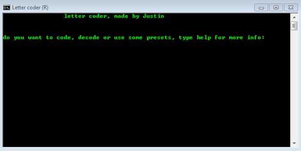 Hola, hace 2 años empecé a aprender batch, cuando era seguro que bastante empecé a hacer a un codificador de la carta, que sólo la mitad terminó y recientemente encontrado en mi antigua copia de seguridad archivos y terminado así que aquí está el código (su un poco largo)