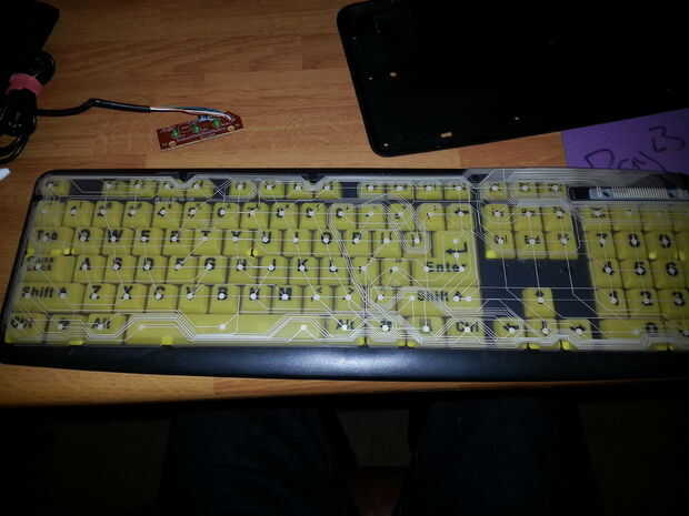 No utilice este teclado amarillo, como su codificador es muy pequeño y difícil de soldar a. Puede usar cualquier teclado te gusta, pero asegúrese de que su encoder tiene espacio para la soldadura en!