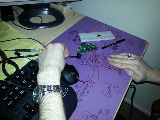 Soldar un extremo en uno de los contactos en tu teclado. DEJE EL OTRO EXTREMO LIBRE.