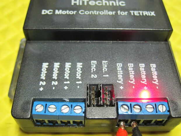 El cable del motor Tetrix entra el positivo y el negativo de "motor 1" en el controlador de Motor DC.