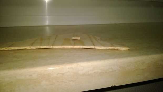- Que inicialmente guardado mis piezas de panel frontal en el garaje mientras se estaba haciendo mucho frío afuera... Después de un día o menos, la madera se convirtió en un poco deformada. (véase el cuadro VII) Yo no soy tanto seguro es el cambio de temperatura o tal vez la humedad que causa la deformación aunque... En cualquier caso, en que guardado las piezas en mi dormitorio con unos libros en la parte superior (para agregar peso) y finalmente la deformación sobre todo desapareció.