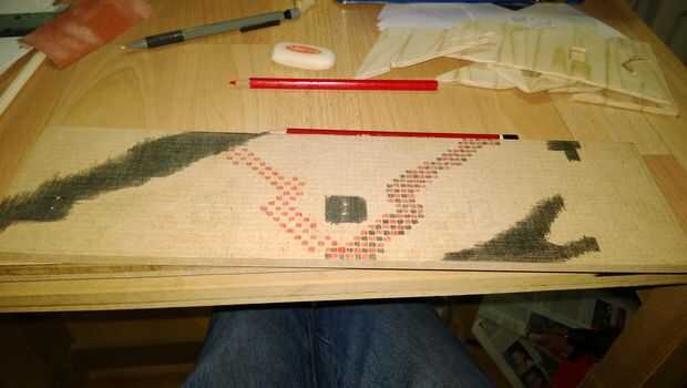 - Colocar las piezas del panel frontal en la parte trasera otra vez y trazar el contorno de las piezas del panel de delante con un lápiz. (ver tercera imagen)