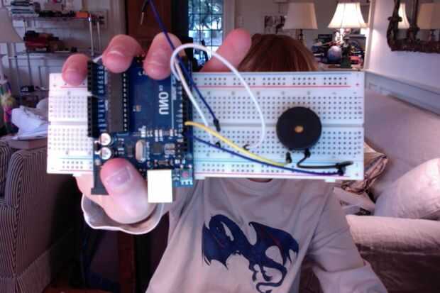 - Conecte el cable positivo del altavoz/piezoeléctrico zumbador/elemento al bus de cable pin de 12 en la protoboard.