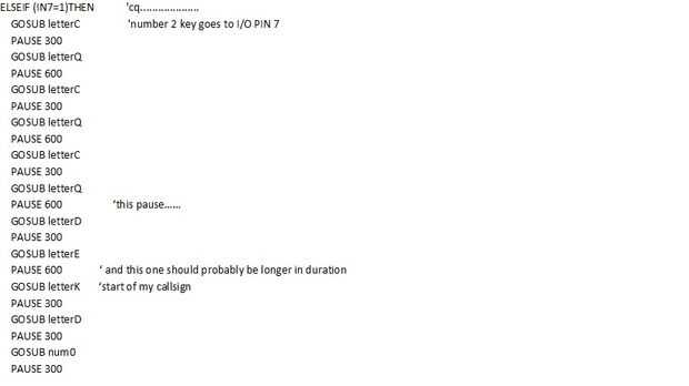 Una muestra de una de las secuencias pre-programadas.  Se personaliza esta parte especialmente con todo lo que quieras automatizar.  El botón número 2 llama CQ – llamando CQ tres veces y mi indicativo dos veces: