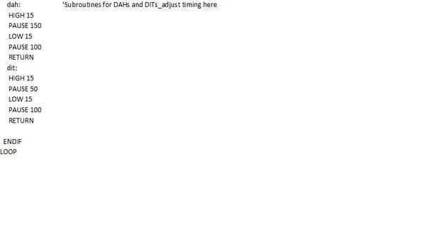 Aquí es la sección de calendario de DIT/DAH.  Esto hace fácil cambiar el calendario para todo el programa.  Pongo esto al final justo antes de la instrucción LOOP probablemente por una buena razón que se me escapa ahora.