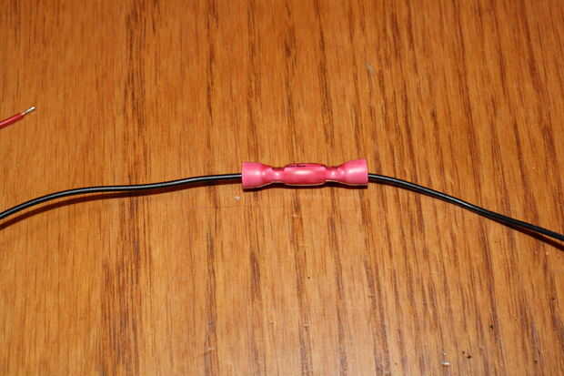 3. usando el conector de ojo, engarce en el cable rojo de la alarma.