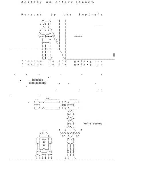 creo que este es el comando en el terminal más raro!Paso 1: lo que debe hacer tipo telnet towel.blinkenlights.nl y presione Entrar. Esto es lo que tienes que hacer.