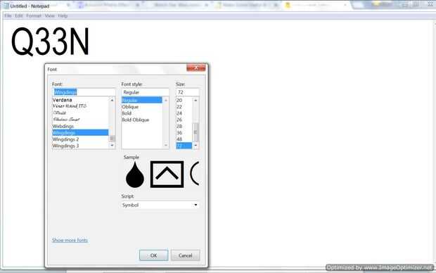 - Abra Bloc de notas y escriba Q33NY en letras mayúsculas.