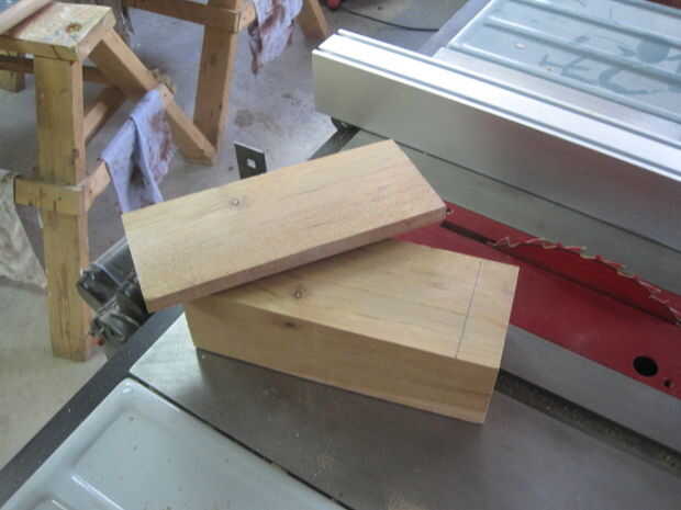 Para empezar este proyecto, primero arrancó una 1/2" pulgadas de mi pedazo de 4 x 4 de madera de cedro con la Sierra de mesa.  Esto actuará como mi tapa.  También marqué una plaza en el centro de mi pronto a ser caja donde comenzará ahuecamiento.  Me mide 1 pulgada en los extremos y un 1/2 pulgada en los lados que me diera una plantilla tamaño agradable para donde se perforarán la caja hacia fuera.