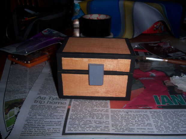 Aquí está una manera simple de crear tu propia madera pecho Minecraft sin ninguna habilidad para trabajar la madera. Simplemente se utiliza una caja de mini cofre de madera que encontré en mi tienda de artesanía local para £1.Quite todo el hardware,