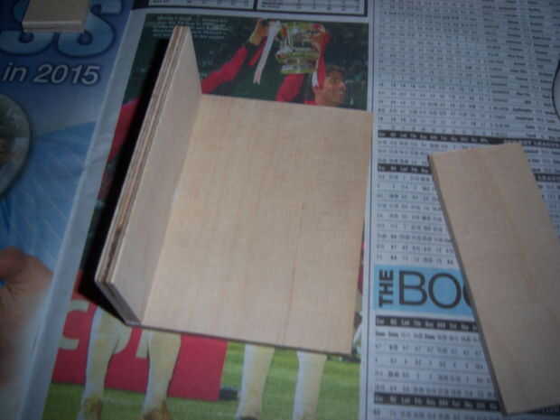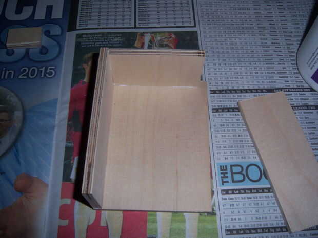 Ahora que tienes las piezas lisas pueden pegarlos juntos. Aplicar una cantidad generosa de pegamento en una de las piezas (piezas laterales) y colocar en la base. Aplique presión para asegurar una mejor adhesión. Su forma alrededor de las piezas base de trabajo hasta que todos han pegado. Se puede aplicar cinta adhesiva para sujetar las piezas mientras que sequedad o abrazaderas si en mano. Ahora tienes las dos secciones para su pecho.