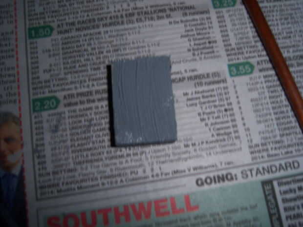 Ahora que ha tapado las áreas de pintura puede sacar las pinturas de acrílico. Necesita pintura blanco y negro para la frontera y cierre. La frontera es recto negro y el pestillo es gris (hacer ambos lados del pestillo). La frontera y el cierre de la pintura y dejar para secar. Una vez seco puede quitar la cinta adhesiva para revelar su frontera hermoso (tan hermoso * gritos *). Pintar sólo un lado del pestillo a la vez.