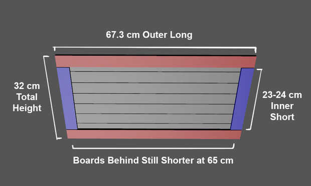 Me decidí por 32cm en total. Así que esto sería la altura de la caja. Tenga en cuenta que usted tiene en cuenta el espesor de la parte inferior del pecho. Esto era para que en lugar de tener que utilizar 8 tableros para los lados, podría utilizar 7 porque, entre el grueso proporcionado por las tablas de fondo y el espacio para la tapa ajustan bien y pensaba que era de madera en el momento.