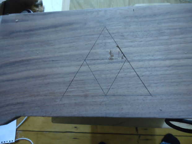 No estoy seguro de qué madera usaba... era bastante poco de astillas de madera había recogido un tiempo atrás. Corte el los triángulos gradualmente reducido hasta que fueron un buen caber cómodamente en las hendiduras y los fija en su lugar con pegamento. Entonces simplemente lijar al ras con mi lijadora de banda.