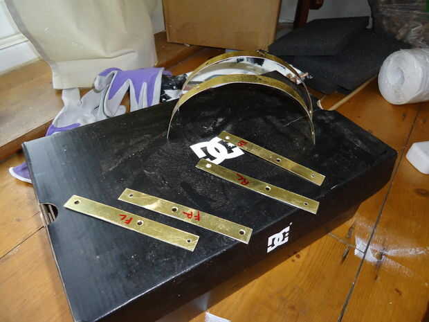 Tenía una bisagra de piano de bronce patadas alrededor de la nave... no era perfecta y los orificios no coinciden muy bien, pero me gusta trabajar con lo que tengo a mano si es posible. Corte a la longitud requerida con una sierra para metales Júnior, golpeada la varilla hacia fuera y pasó mucho tiempo recortar torpemente de los bits hingey. Había unos rasguños pero esto en gran parte salió muy bonito.