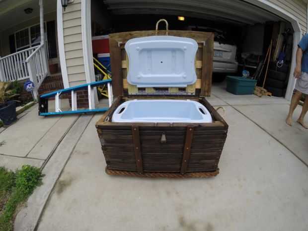 Tuercas de acero inoxidable, arandelas y pernos utilizados para asegurar la tapa de la hielera a la parte superior del pecho